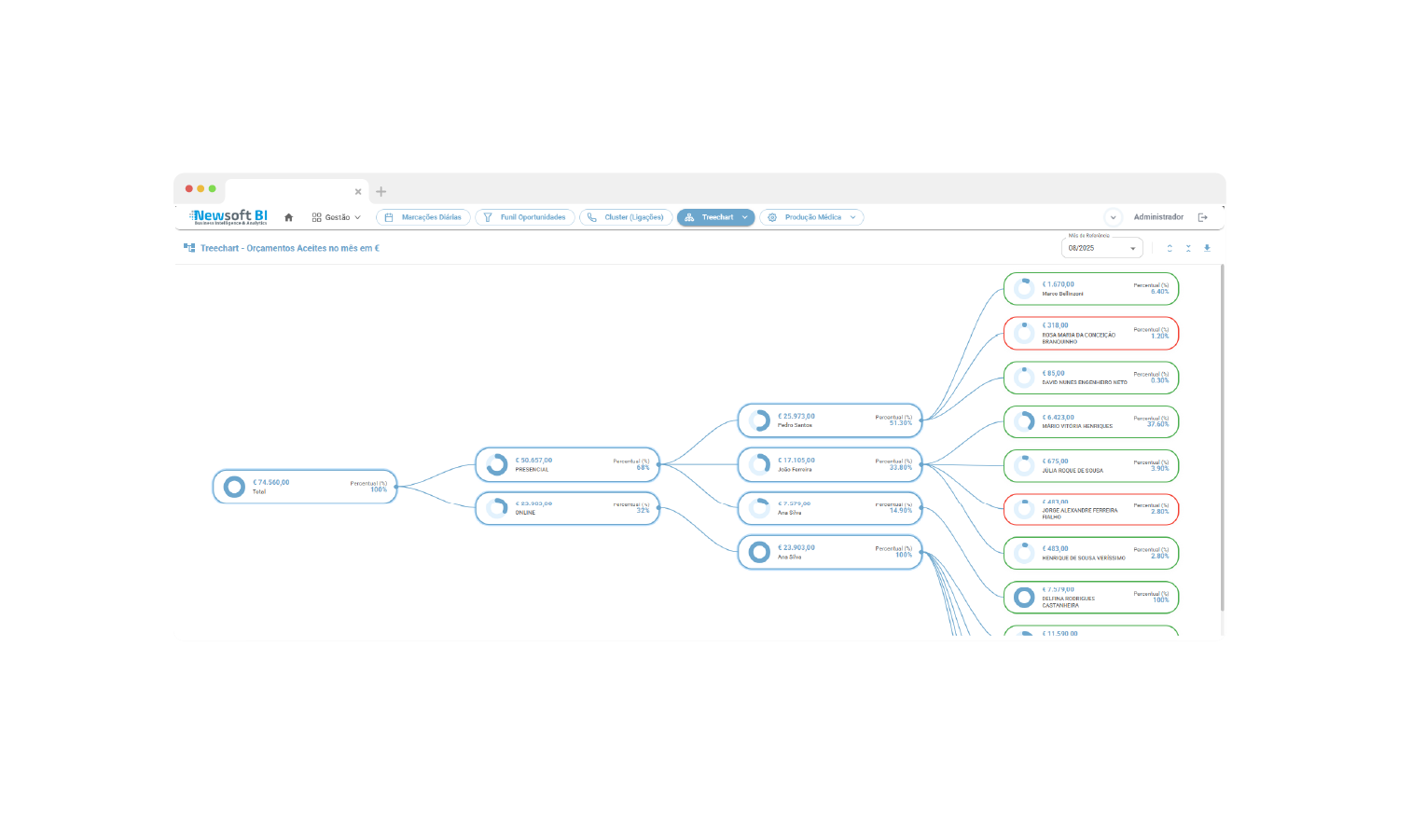 Visualize evolução e tendências: perceba se está a crescer, onde está a perder rendimento e como cada equipa contribui para os resultados. Perfeito para reuniões internas e planeamento estratégico.